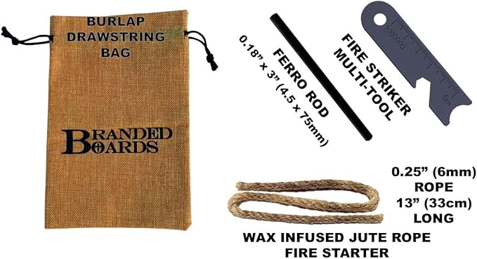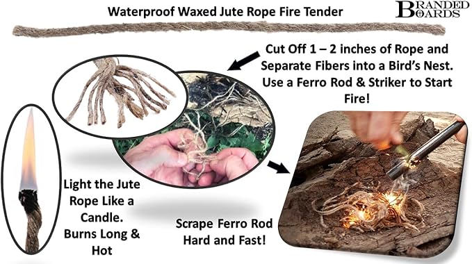 - With the Ferrocerium Rod, Multi Tool Fire Striker and Waterproof Waxed Jute Rope Tender you can start a fire anywhere and under any conditions, Rain, Snow, Cold, Hot or Windy.