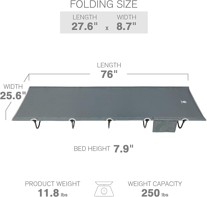 - STORAGE: The camping sleeping cot has side pocket to put the cell and night time necessities, makes your camping experience so much more enjoyable