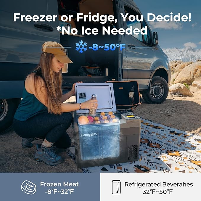- Max and Eco Mode: With the CRPRO compressor refrigeration technology, the 12-volt refrigerator consumes 45W in Max mode and only 36W in Eco mode, contributing to saving money. This upgraded refrigerator also adds an interior LED light for you to use at night