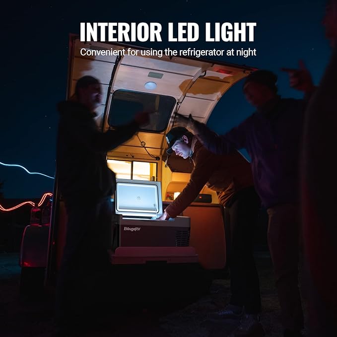 - Max and Eco Mode: With the CRPRO compressor refrigeration technology, the 12-volt refrigerator consumes 45W in Max mode and only 36W in Eco mode, contributing to saving money. This upgraded refrigerator also adds an interior LED light for you to use at night