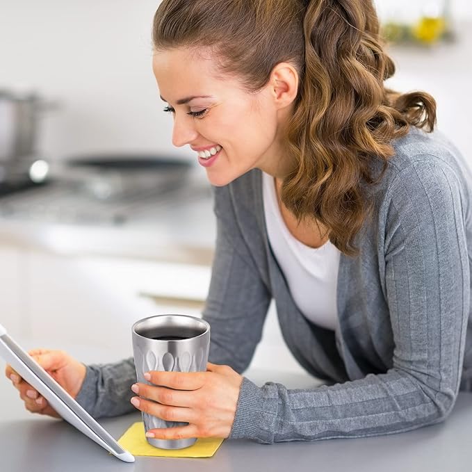 - Double Layer Insulated Cups: stainless steel tumblers are double layer design make hot drinks will be kept hot, and your cold drinks kept cold longer than single layer cups; And metal drinking glasses are anti scalding heat insulation and cold insulation, so it is no sweat cold cup, you don't have to worry about annoying drips