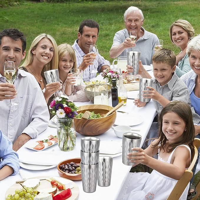 - Ideal Drinking Cups For Adults: 16oz/ 450ml sets of 8 metal drinking glasses are nice for adults; The ergonomic design of double layer cup fits comfortably for hands; Especially, the wider opening of tin cups for drinking will allow wine quickly reach the middle of the tongue, suitable for tasting