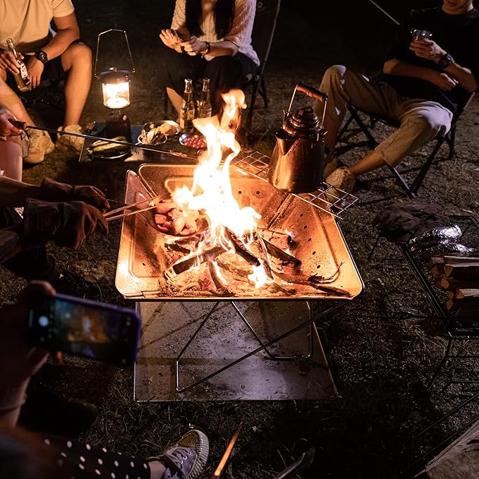 - ★Heavy large size fire pit & camping grill, recommended for about 10-12 people★ This heavy large size fire pit is 47lb weight, recommend 2 people to carry.