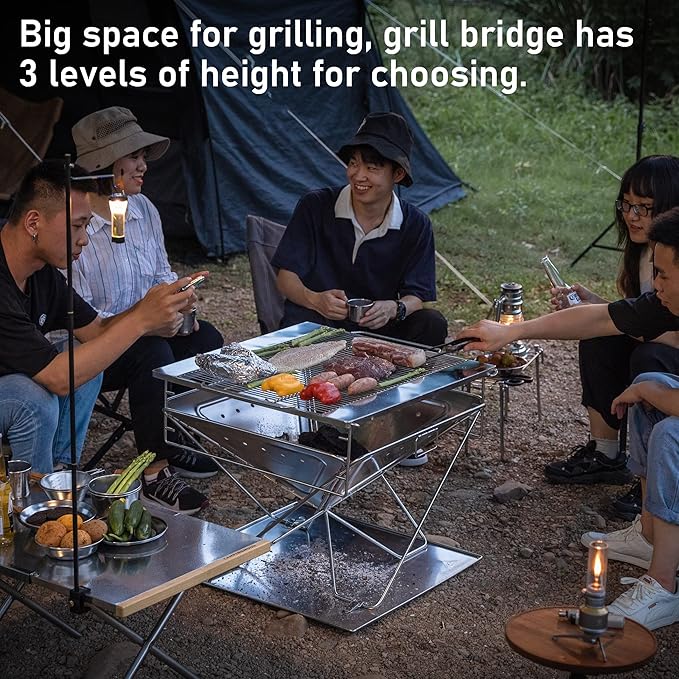 CAMPINGMOON Foldable Fire Pit Charcoal Grill Wood Burning Heavy Large 24-inch Stainless Steel with Duty Storage Bag MT-065