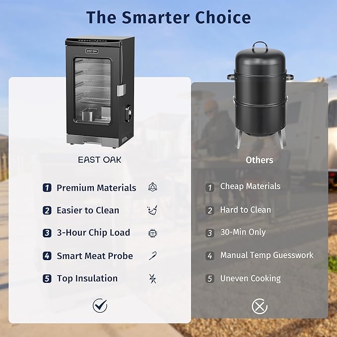 EAST OAK 30" Electric Smoker for Outdoors | Built-in Meat Probe & Up to 6× Longer Smokes on a Single Load | Side Chip Loader for Uninterrupted Smoking | Bigger Batches with 725 sq in Cooking Area