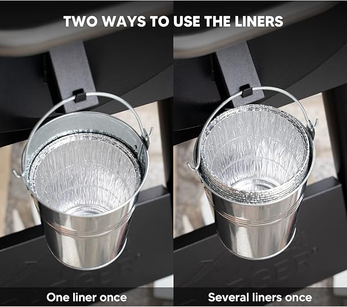 - 【Convenient Drip Bucket Liners】 Making cleanup a breeze, the heat-resistant bucket liner is even heavy duty enough to remove while the grease is somewhat hot; Or you can simply place the 30 pcs liners in the grease bucket and throw the top one away when it is full;