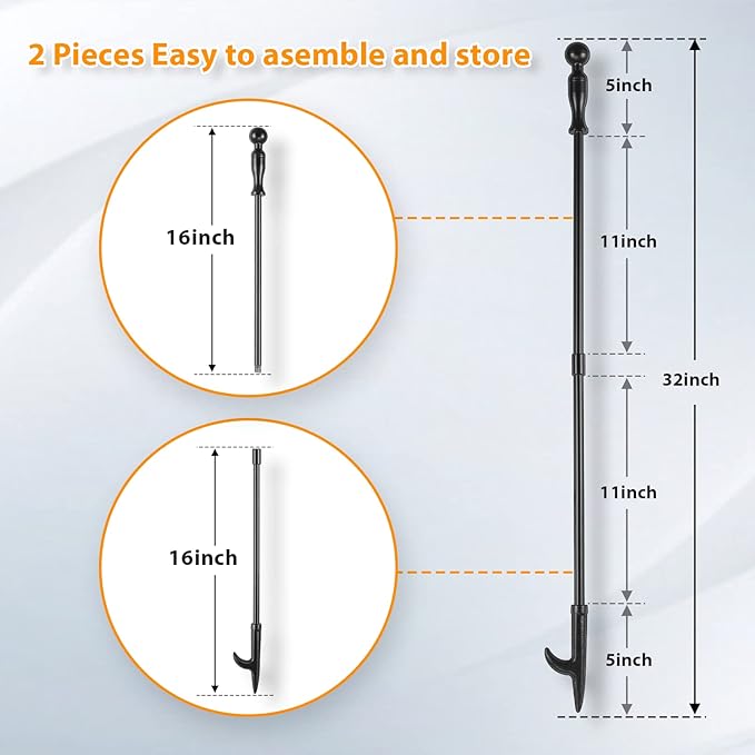 - 【2-PIECE FIREPLACE POKER SET】The 32-inch fireplace poker with removable design is the suitable length to protect your safety and is easier to carry out and daily storage.The 26 inch fireplace tongs angle can be opened up to 150°, which is flexible and easy to use.
