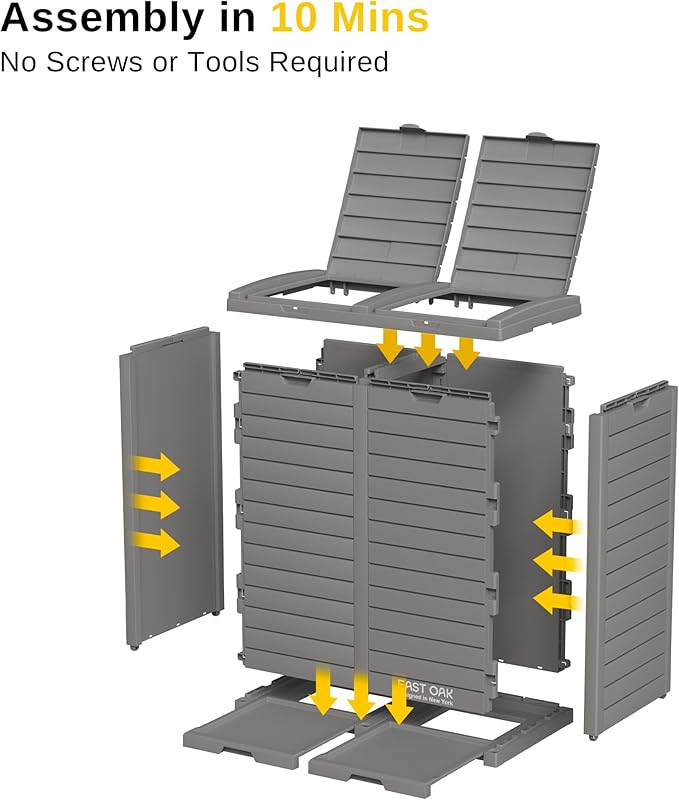 EAST OAK 76 Gallon Outdoor Trash Can | Waterproof Resin Garbage Can with Tiered Lid & Drip Tray | Outside Trash Bin for Patio | Kitchen, Backyard & Deck | Gray Color