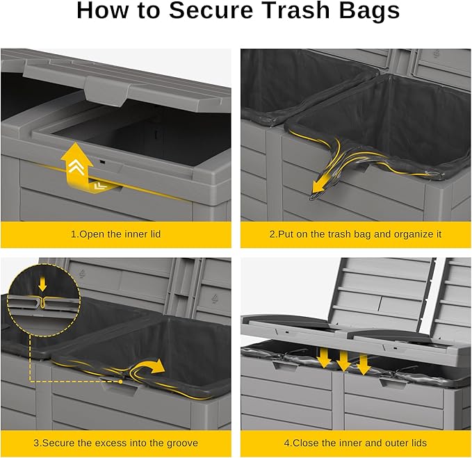 - ππ’π¨πππ π§π₯ππ¦π & πππ: 76 gallon capacity for 2 trash bags, compatible with 33-40 gallon trash bags-43~47"L*28~30"W. Convenient for garbage classification and wet and dry separation, you can use "two" garbage cans as needed