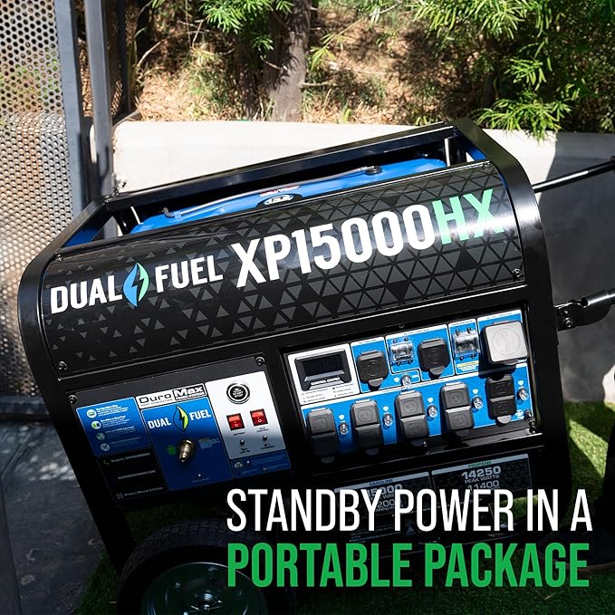 DuroMax XP15000HX 15,000-Watt Dual Fuel Portable Generator - Gas & Propane, Remote Electric Start, Whole Home Power Backup, Transfer Switch Ready, RV & Emergency Ready