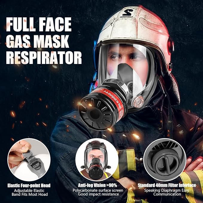 - 【 Professional Protection 】: The Full Face Gas Masks adopts a 40mm activated carbon filter, which can effectively block dust, organic vapors, chemicals, and particulate matter in the air. The protection efficiency is higher than 99.97%.