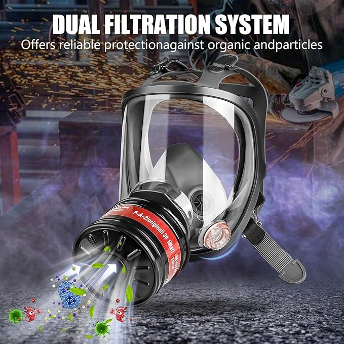 - 【Reusable】: The full face respirator mask is reusable. Just change the filter regularly. We come with a 40mm activated carbon filter canister, meanwhile, the respirator is compatible with a wide variety of filters, you can buy the right filter on Amazon.