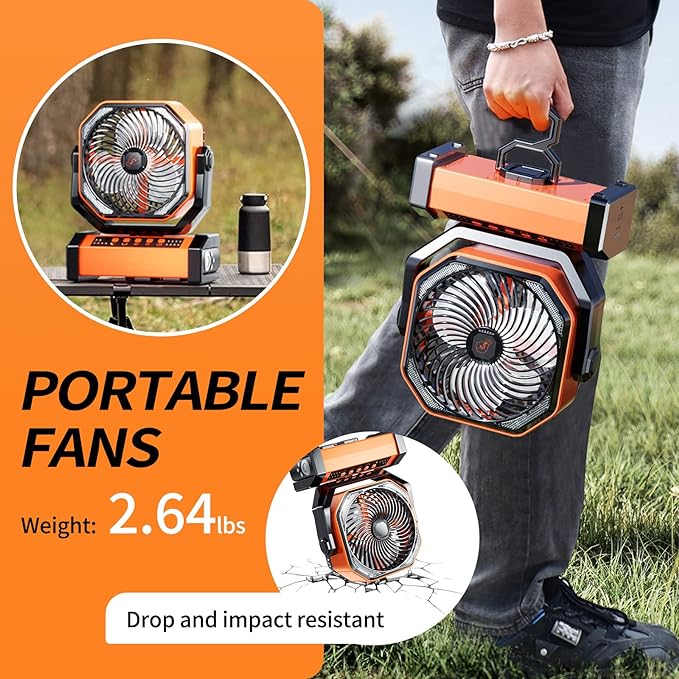 Camping LED Fan with Light, 20000mAh Rechargeable Battery Powered Outdoor Tent Fan with Light and Hook, 4 Speed, Personal USB Desk Fan for Camping, Fishing, Power Outage,Hurricane, Worksite