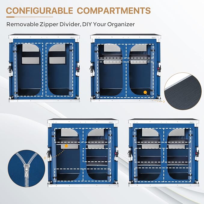 EAGLE PEAK Double Outdoor Folding Camping Table with Large 3-Tier Storage Organizer and Side Pockets, Easy Set Up Portable Aluminum Camping Kitchen, Blue