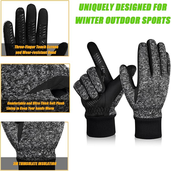 MOREOK Winter Gloves for Men/Women -10°F 3M Thinsulate Warm Touch Screen Snow Ski Bicycle Bike Gloves for Driving/Cycling/Running/Hiking