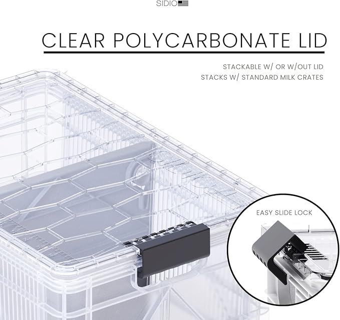 - RESISTS CRACKS, DENTS AND EXTREME TEMPERATURES. Camping, moving, or long term storage? The SIDIO crates can handle it all. Sturdy and reliable; with ergonomic handles for easy transporting, and an easy-slide polycarbonate lid that is transparent for effortless viewing of contents.