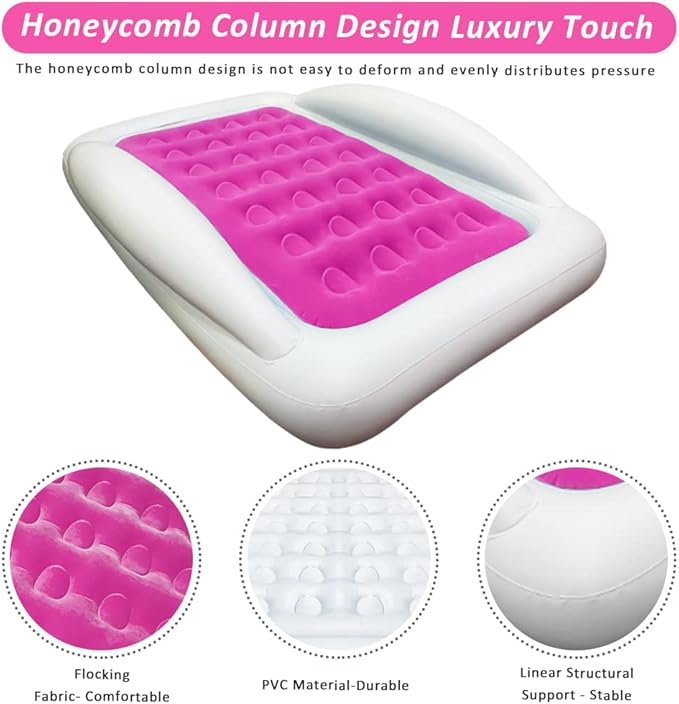 - DURABLE HONEYCOMB FLOCKING DESIGN: The kids travel bed air mattress is adapt premium quality of PVC or other qualified materials, with built-in leak-proof valve include which can with stand high pressure. This travel bed can support up to 150 lbs.
