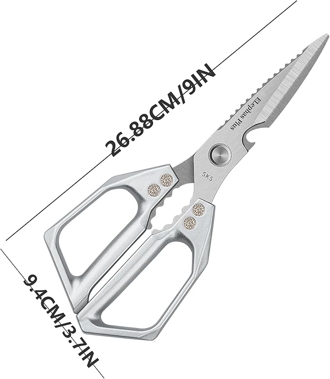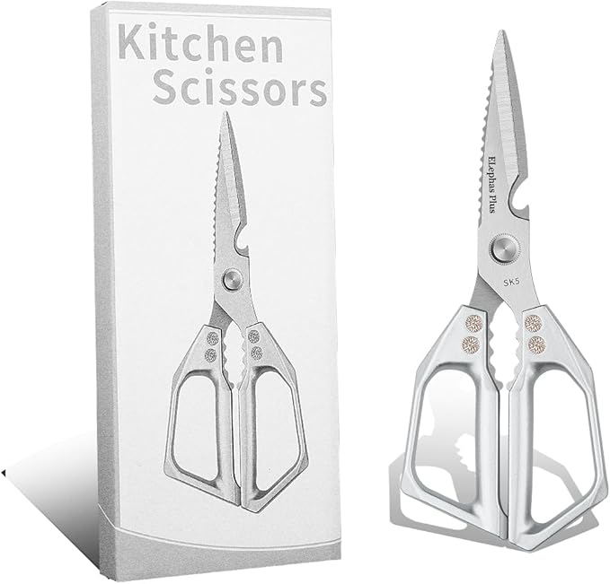 - High quality stainless steel material,heavy duty sharp kitchen shears are excellent and cost-effective.You will gradiently working the plastic out of your life so you should be happy to find quality, all-metal kitchen scissors. ELephas PLus kitchen shears heavy duty satisfied these very well and feel good in the hand, cut well and are strong.