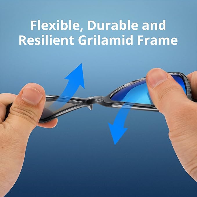 - SUPERIOR AND SUPER LIGHTWEIGHT FRAMES – Made from the same Grilamid material commonly used by the military and in medical applications, our frames are greatly lightweight, extremely flexible, and heat and UV resistant. Grilamid frames are well known for their strength, lightweight comfort, shape integrity, and impact resistance. This ultra-lightweight and malleable material translates to a very comfortable fit