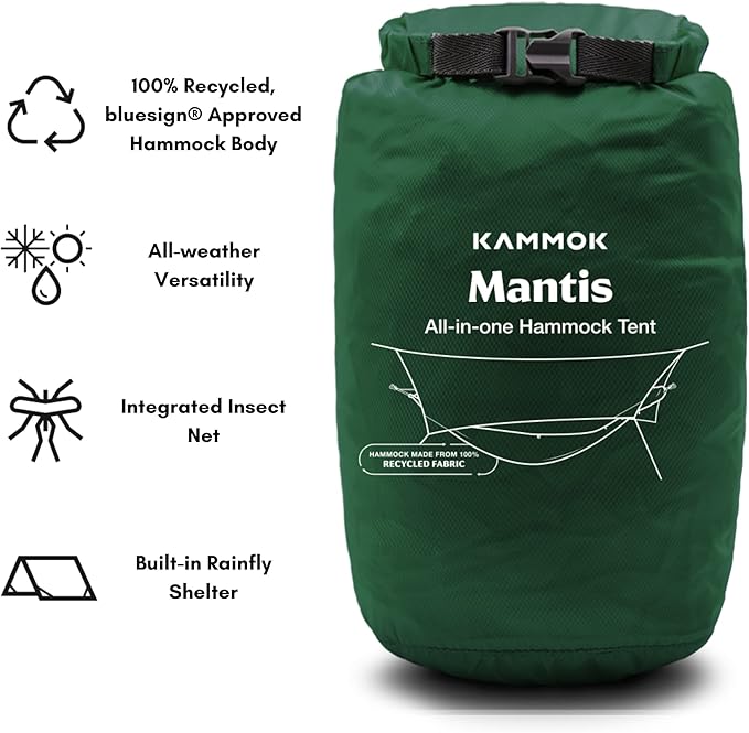 KAMMOK Mantis Hammock, All Seasons, Mosquito Net, Storage Bag, Camping, Outdoor Activities - Pine Green