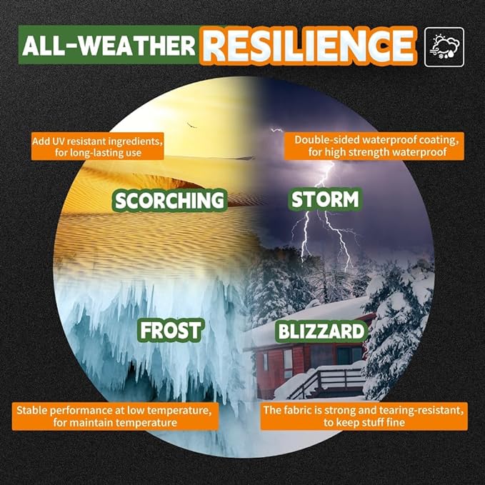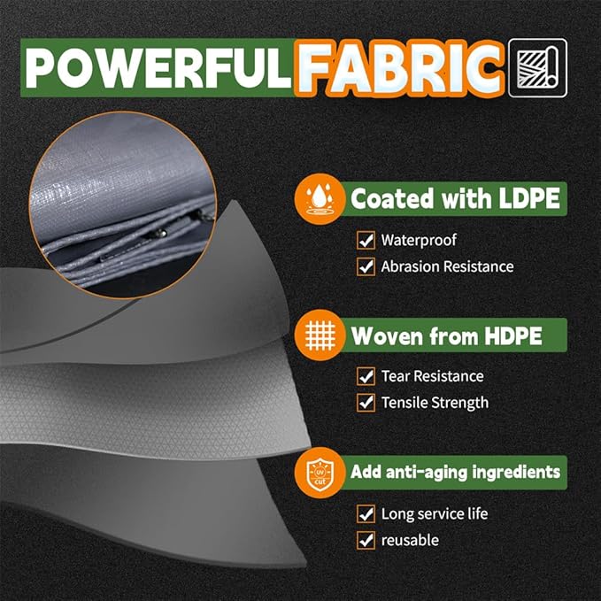 - 【UV RESISTANT +WEATHER PROOF】This tarp can provide a UV protection in the sun, It has heavy duty rings that are double reinforced with tarp material and quality stitching, protect your objects from extreme weather conditions.