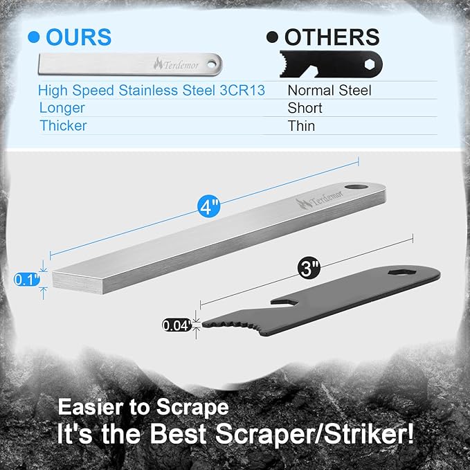 - Ultimate Fire Starter for Adventurers: The Terdemor flint and steel fire starter kit is designed for those who love the outdoors. Perfect for camping, hiking, family activities, and emergency preparedness. A thoughtful gift for sons, daughters, grandkids, husbands, and boyfriends.