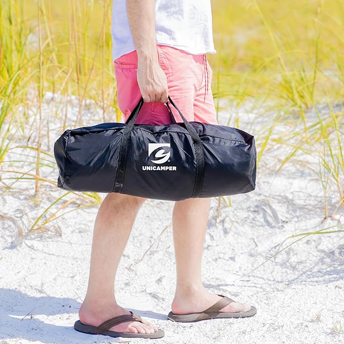 - Sun Protection: camping tent features UPF 50+ to block harmful UV rays and prevent sunburn. The 195T taffeta with an 800MM coating ensures privacy by making the tent opaque from the outside