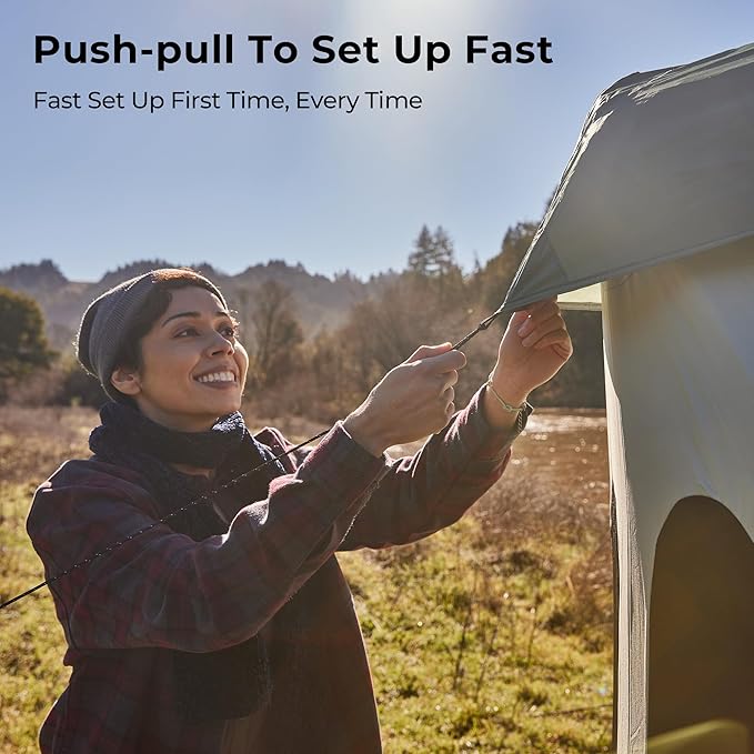 - 4-SEASON CAMPING: In summer, featuring 8 side windows and 4 overhead windows, the Space Acacia Tent provides you optimal ventilation and a perfect view for stargazing. In winter, wrap the canopy to stay 10°F warmer than the outside. Suitable temperature for camping 23℉-95℉.
