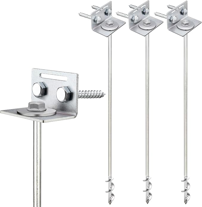 Ground Anchors Screw In - 24" Set of 4,6,8 with Brackets and Drill Bit - Earth Anchors - Mobile Home Anchors - Storage Shed Anchor Kit - Swing Set Anchors for Metal Swing Set - Playset Anchors - Ties