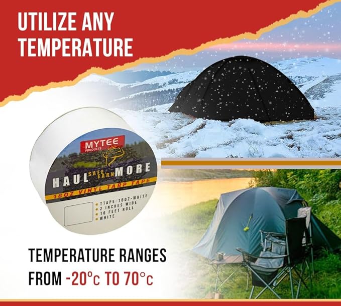 Mytee Products 18 oz Waterproof White Vinyl Tarp Repair Tape 2 Inch x 16 FT with Heavy Duty Adhesive Backing - Tarp Patch Kit, Tarp Repair Kit