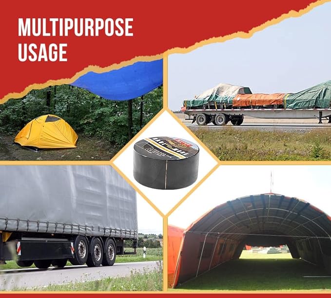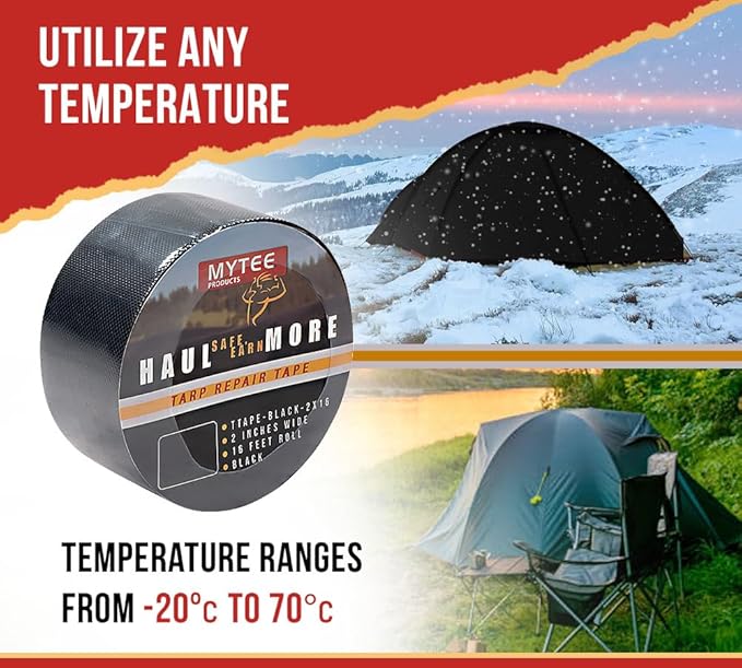 Mytee Products 8.8 oz Waterproof Black Vinyl Tarp Repair Tape 2 Inch x 16 FT with Heavy Duty Adhesive Backing - Tarp Patch Kit, Tarp Repair Kit