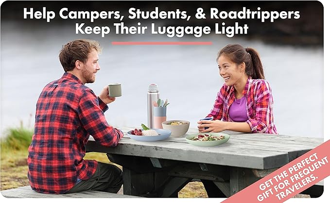 - ADVENTURE-READY TABLEWARE: Lightweight and compact, our set is your perfect companion for picnics, camping, RV trips, and outdoor adventures. Stylish, durable, and practical—take FOODLE wherever your adventures lead. ADD TO CART today!