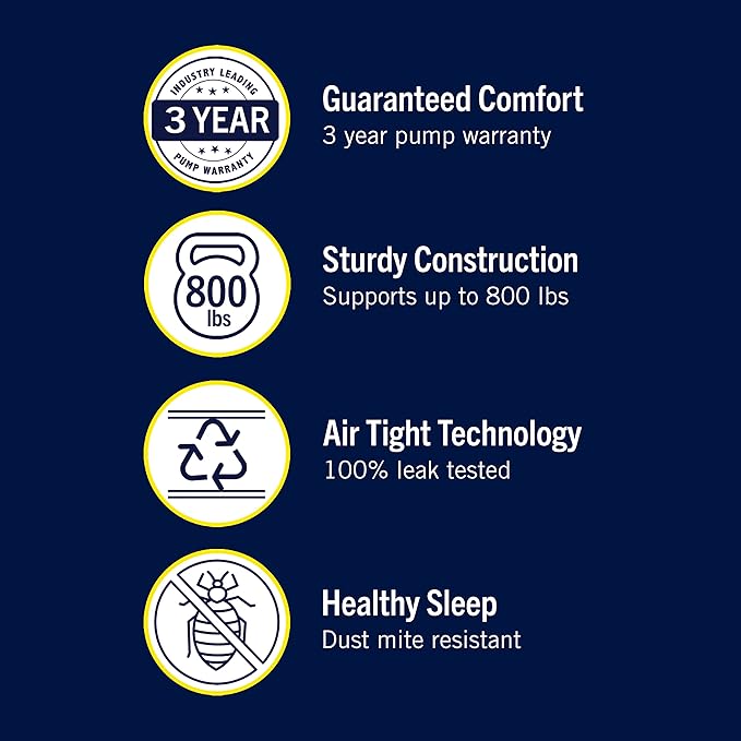 - Effortless Maintenance & Setup: Stay air-tight with our leak-tested Sure-Lock pump, ensuring firmness all night. Enjoy hassle-free inflation in just 2 minutes with easy dial control.