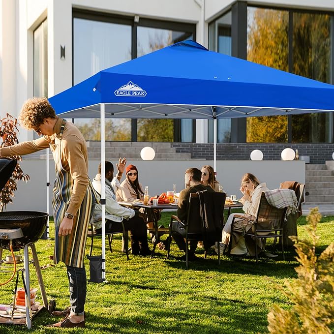 EAGLE PEAK Pop Up Canopy Tent with Wheeled Carry Bag, 8 Stakes, 4 Ropes, 4 Weight Bags, Easy Set Up Tent Canopy, 12x12 ft, 144sqft of Shade, Blue