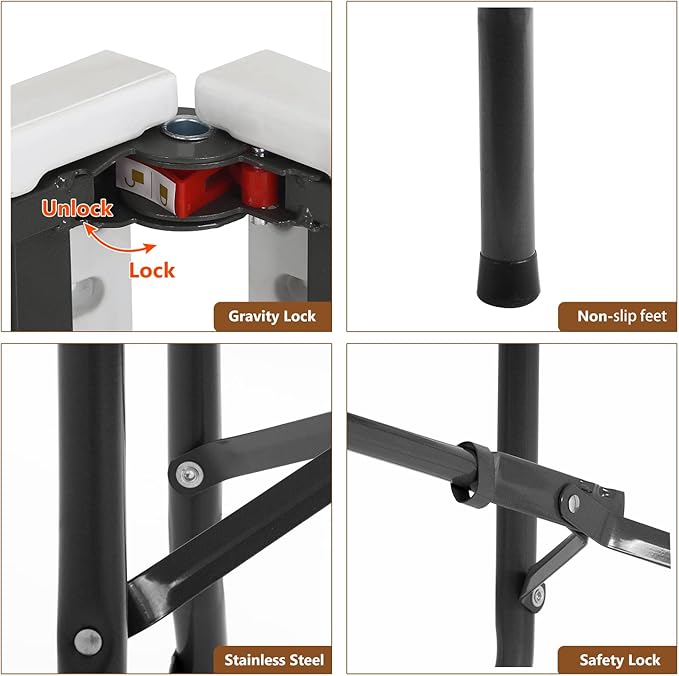 - ๐High Quality: The Outdoor Dining Table with Powder-coated steel legs, the folding table frame joint locks, and non-slip rubber feet help to keep the plastic table in place during every event.