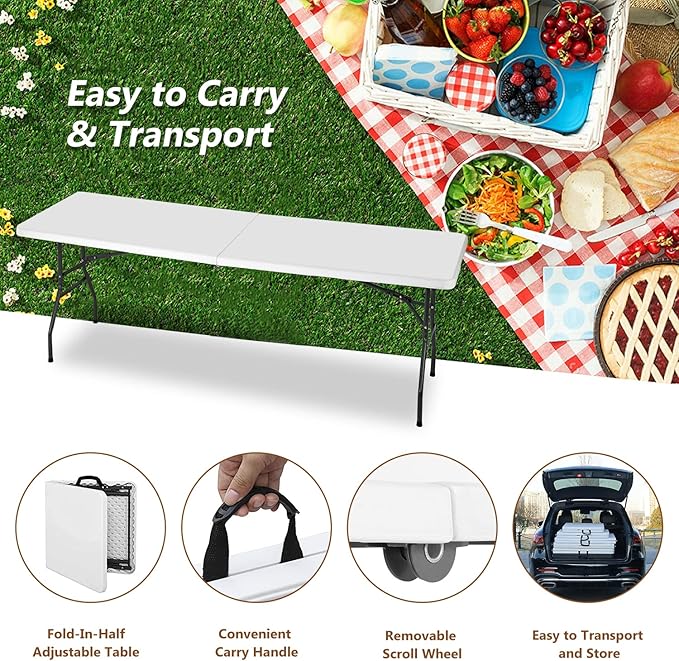 FDW Folding Half Portable Foldable Table for Parties Backyard Events (White, 6 FT 70 * 29) (White, 8 FT)