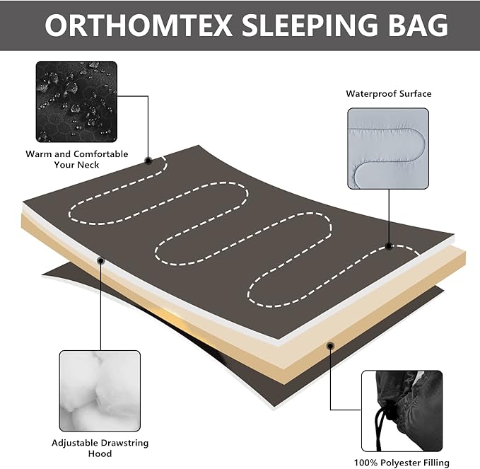 - 【 CLEAN 】 Our waterproof outer shell is easily wiped clean with a damp cloth. In case of heavy soilage the sleeping bag is designed for machine washing as well, ensuring easy maintenance and longevity.