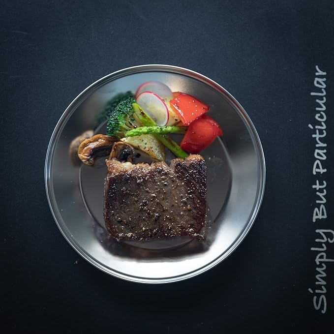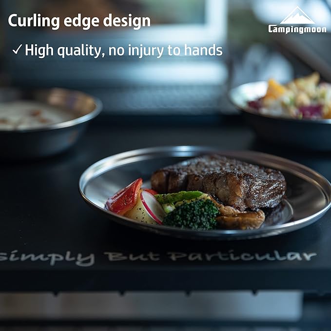 CAMPINGMOON Camping Plates Set Stainless Steel Dishwasher Safe Kitchenware S395