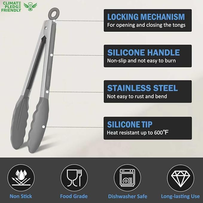 - Premium Materials: EEKEDO kitchen tongs are constructed with food-grade stainless steel and silicone. Carbon free.Thickened stainless steel makes it stronger and more durable.It is convenient and safe to your cooking.