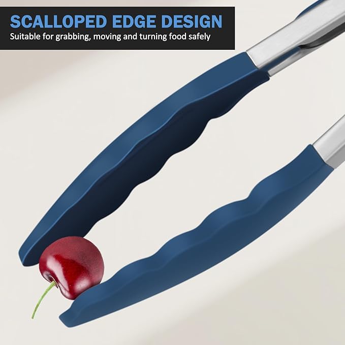- 600ºF High Heat-Resistant: The silicone tongs feature BPA free silicone tip that will not scratch your nonstick cookware. Scalloped edges securely hold food. EEKEDO Tongs are great for frying, grilling, stirring, and serving. Non-stick surface easy to rinse, dishwasher safe.