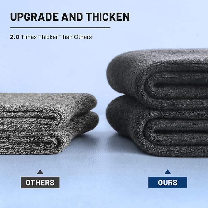 - [TOASTY WARM]: Thickened material contributes to strong thermal function. Each comfortable pair of wool socks mens like a stove during cold and chilly winter, keeps your feet warm and cozy all winter long. Your feet will thank you later.