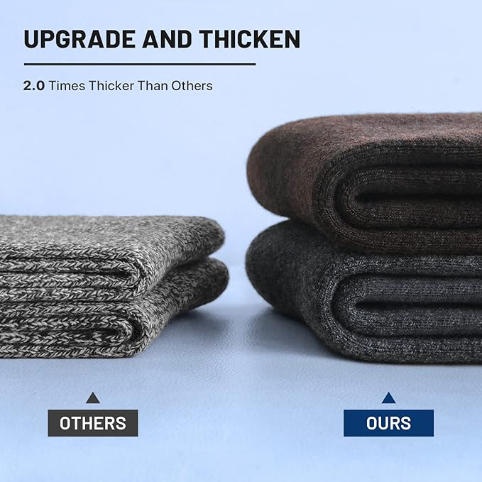 - [TOASTY WARM]: Thickened material contributes to strong thermal function. Each comfortable pair of wool socks mens like a stove during cold and chilly winter, keeps your feet warm and cozy all winter long. Your feet will thank you later.