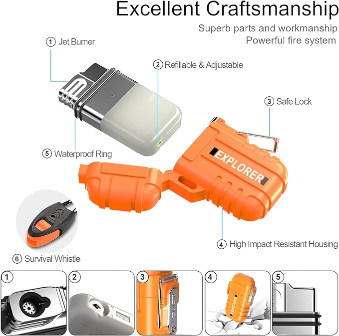 - 【Waterproof Lighter】The Jaerdhs butane lighter is built with rubber seal and safety lock. It's Weatherproof and can be used anywhere in any weather. A necessary tactical gear for the outdoors.