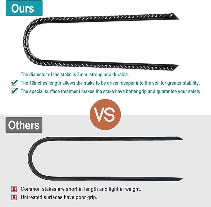 - Minimal Ground Disturbance: Despite their strong anchoring capability, U-shape canopy stakes are designed to penetrate the ground with minimal disruption, making them lawn-friendly.