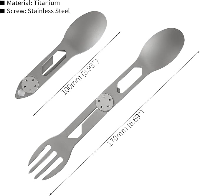 - Ultra light the integrated combination of folding fork and spoon, so you don't need to worry about dragging a whole set of silver articles too heavy during the journey, each piece is only 20g/0.7oz.