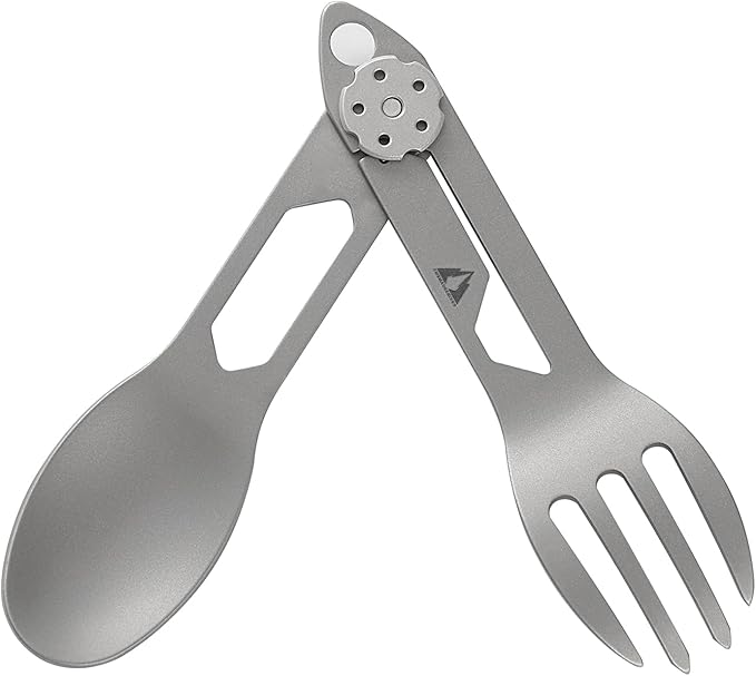 CMB Made Knives Titanium 2 in 1 Folding Fork and Spoon Combo Lightweight Camping Utensil, Spork for Backpacking, Hiking, Outdoor Survival Cutlery EDC Tool CMB-E01