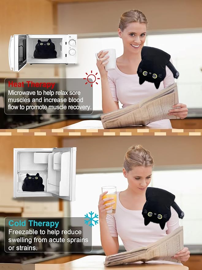 - An Adorable Black Cat, A Cuddly Heating Pad: Simply put the heating pad into the microwave oven for 2-3 minutes, and you’ll be instantly surrounded by the cozy and moist warmth for as long as 30 minutes. Why not say goodbye to the messy unpacking procedure of traditional heat pad? We provide a whole new experience!