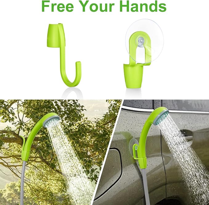 - PORTABLE CAMPING SHOWER: Suitable for INDOOR/OUTDOOR shower, Weighs only 25.2 ounce, easy to carry and store in luggage, backpack or car trunk. Perfect for outdoors camping, hiking, kid bathing, pet cleaning, car washing, plants watering, windows and backyard cleaning.