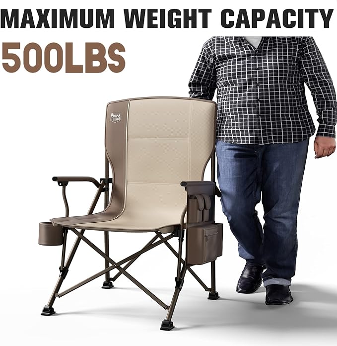 TIMBER RIDGE Oversized Folding Camping Chair High Back Heavy Duty for Adults Support up to 500lbs with Cup Holder, Side Pocket Cooler Bag