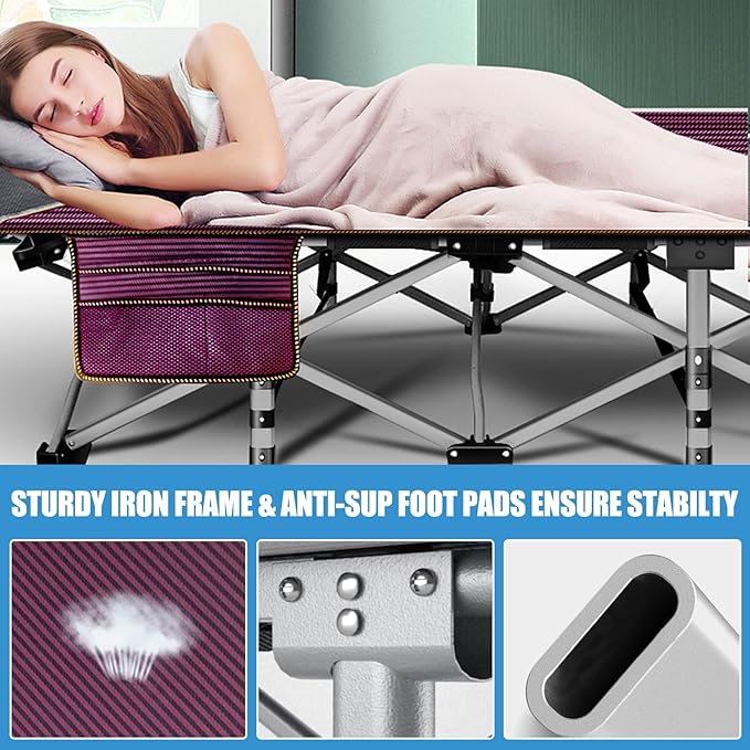 - PREMIUM FABRIC: This portable folding cot is made of 1200D Oxford fiber, which is super strong and easy to clean; Make it more durable and can last longer;